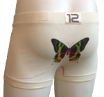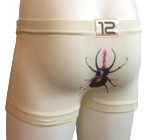 記念すべきOVER THE TWELVE 初COLLECTIONです。まだ誰も踏み入れていなかった世界観に突入した瞬間です。今でもこの興奮は忘れません!当初、中国生産で進み8割ほどB品になってしまい、慌てて日本生産に切替え再スタートしました。そういうわけで、洗濯表示は中国生産と記載されていますが日本生産です。テーマは”プログレッシブメンズアンダーウェア”です。ジオメトリックプリントやラインストーンで装飾された怪しいメッセージ、タイダイ染等、見たこと無い下着を作る旅の幕開けでございます。
